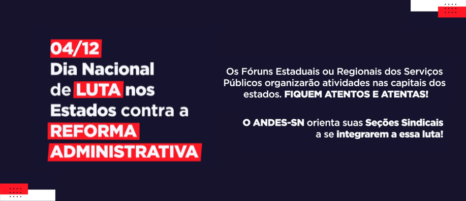 4 de dezembro é Dia Nacional de Luta contra a Reforma Administrativa